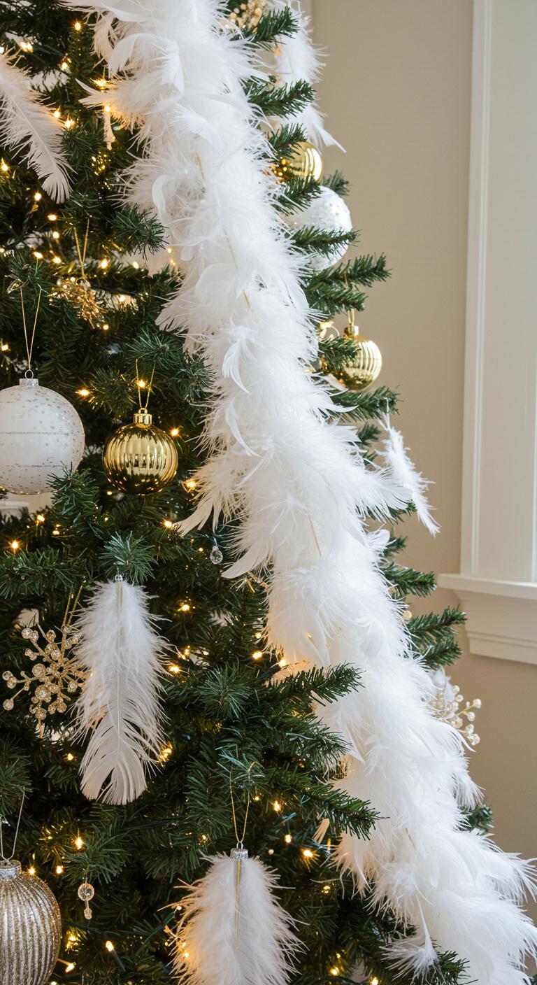 White feathers delicately drape over your Christmas tree, adding a soft touch that evokes the serene beauty of winter.