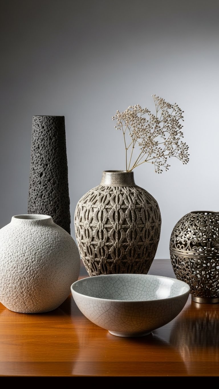 Mix textures like rough and smooth. Use vases you have. This works year-round. Save: Reuse home stuff. Combine: Stack and vary.