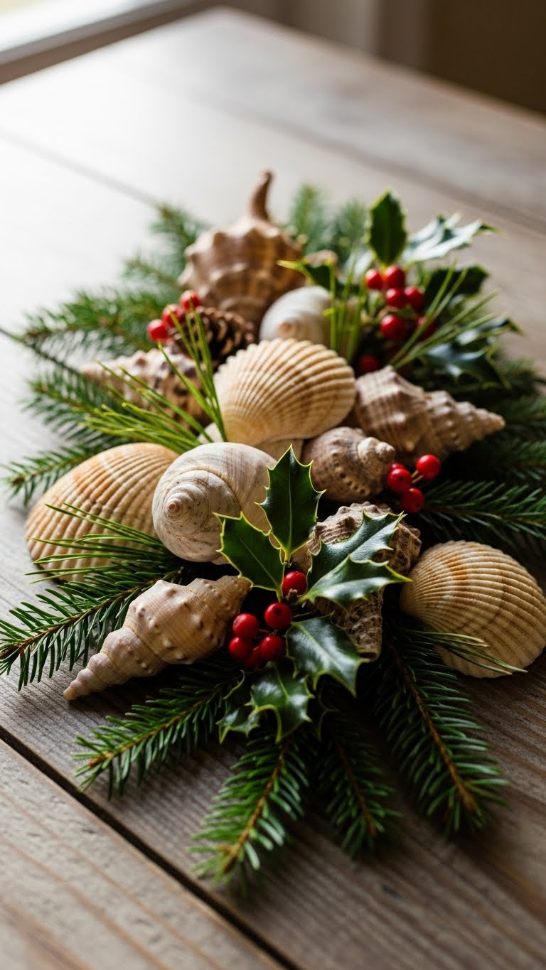 Mix shells with greens. It’s a fun twist. Feels fresh. Cheap: Collect shells. Combine: Scatter and mix.