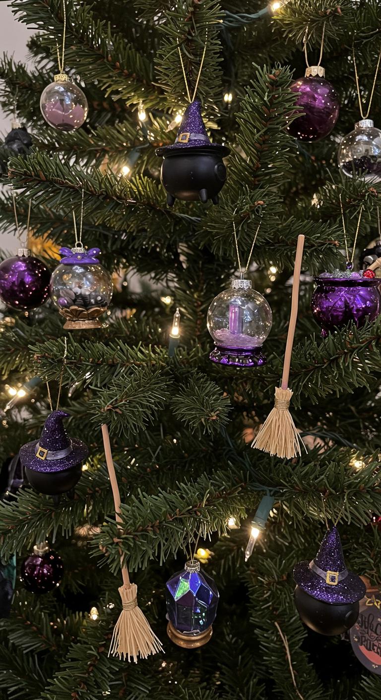 Witch-themed ornaments are a must-have for a bewitching Christmas tree. Look for miniature cauldrons, broomsticks, and crystal balls. These playful additions bring a magical element to your tree. If you love crafting, try making your own! Gather materials like polymer clay to sculpt fun shapes and paint them with metallic colors. You can also create bead ornaments in witchy colors like deep green, silver, and black. For a quirky style, gather items like small bones or feathers to hang as unique, natural ornaments. Your witchy tree will be the talk of the holiday gatherings!
