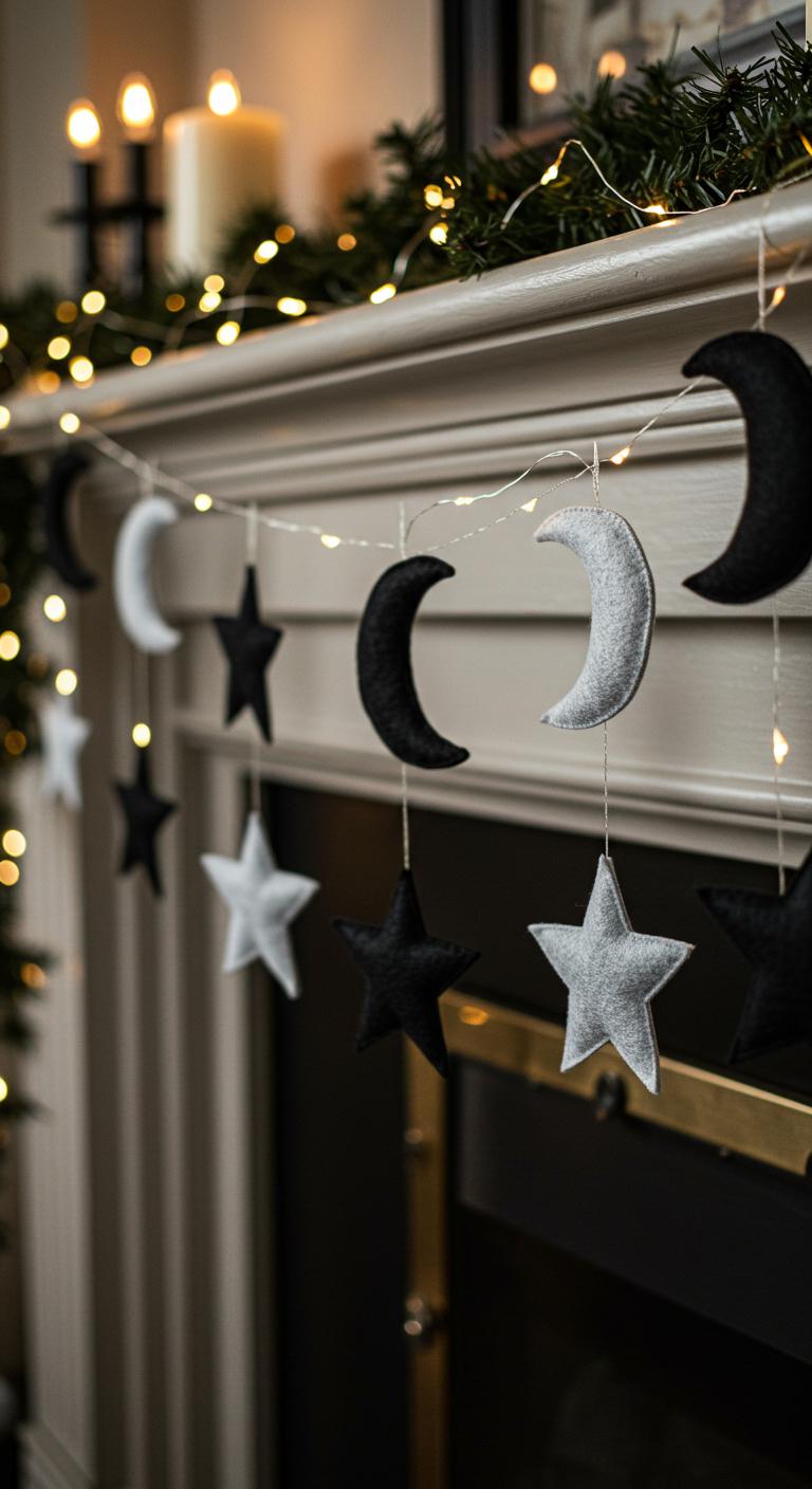 A moon phase garland adds a celestial touch to your decor. Create one by cutting out shapes from felt or colored paper. Use dark hues like black, purple, and silver. String them together with twine or ribbon for an ethereal appearance. Position it across your mantel, or hang it around windows. This decor is simple and effective. You can even incorporate small fairy lights in the garland for added sparkle. It’s an easy project that allows for creativity while staying budget-friendly.