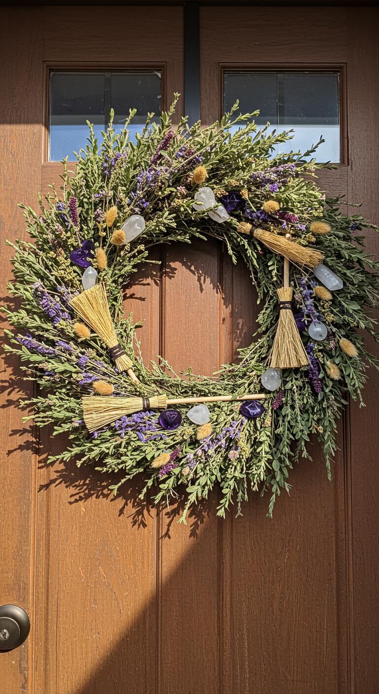 Create a magical wreath for your door that welcomes guests with charm. Start with a basic grapevine wreath base found at craft stores. Decorate it with dried herbs like rosemary and lavender, symbolizing protection and magic. Add crystals for an enchanting touch, or even small broomstick figurines. This easy-to-make wreath can be hung proudly, showcasing your witchy spirit during the festive season. It’s a simple yet powerful way to add unique character to your home.