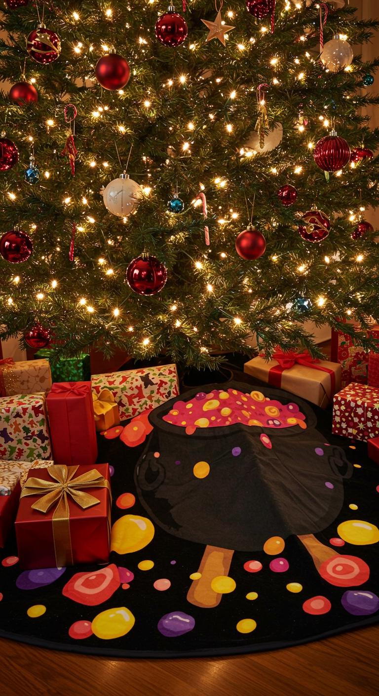 Make a statement with a cauldron tree skirt that will surely gather compliments! If you’re crafty, consider sewing or painting your own tree skirt. Use black fabric and add details that mimic the appearance of a cauldron, like green and yellow paint splashes representing magic potions. For those less crafty, check local stores for pre-made designs. This unique touch not only adds to your theme but also ties the whole decor together. Plus, it’s a fun conversation starter!