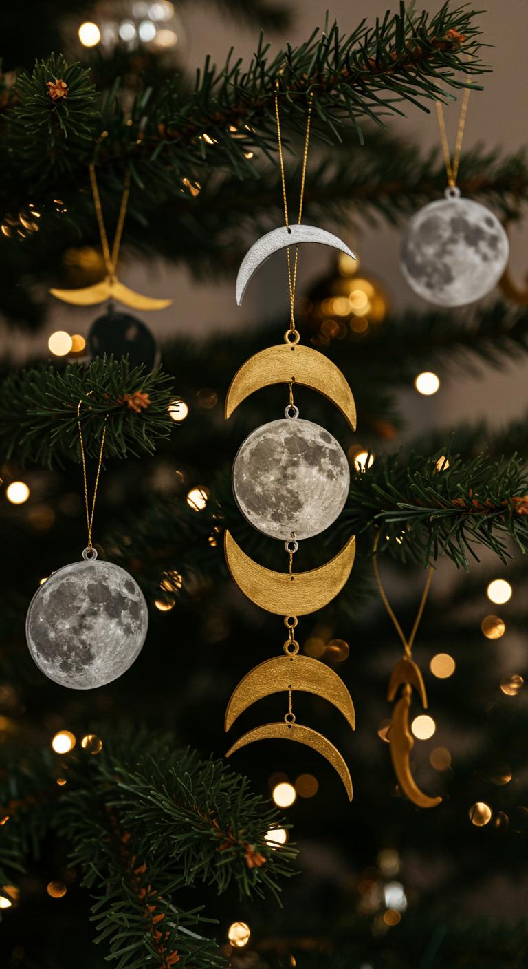 Celebrate the celestial with moon phase ornaments! These decorations can enhance your witchy Christmas theme wonderfully. Create them easily using wooden shapes or cardboard cutouts painted in different shades of silver and gold. Represent each phase of the moon from new to full. Hang them on your tree or display them on your wall for a captivating look. It’s a simple, budget-friendly way to blend holiday spirit with lunar magic in your decor!