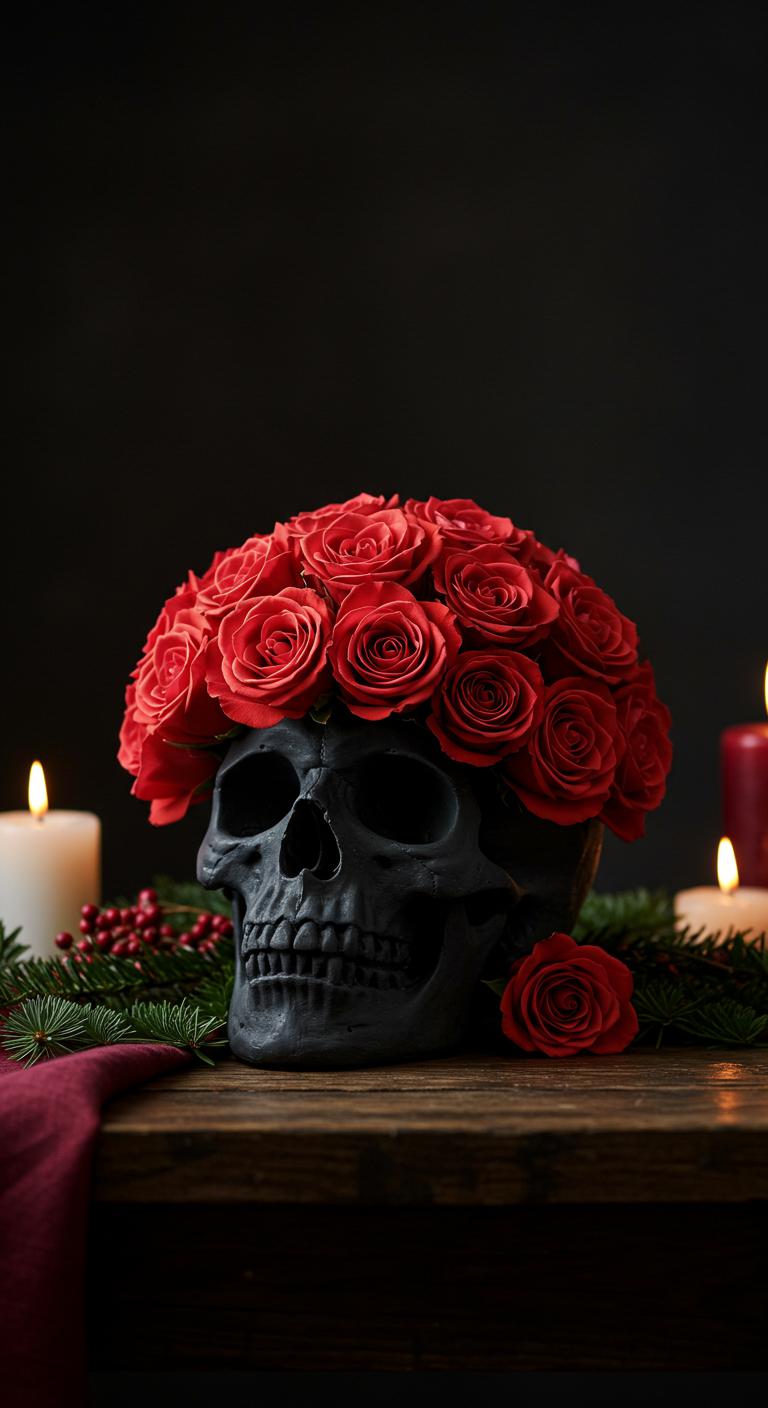 Incorporate skull and roses decor for a unique twist on holiday styling. This eye-catching centerpiece can be created using a faux skull, adorned with faux roses. Place it on your table or shelves to create a dramatic look. You can find affordable skull decorations at local stores or DIY one using a painted foam skull. Make sure to intertwine flowers in seasonal colors to tie together the festive look. This decor mix adds an edgy flair while embracing the holiday spirit.