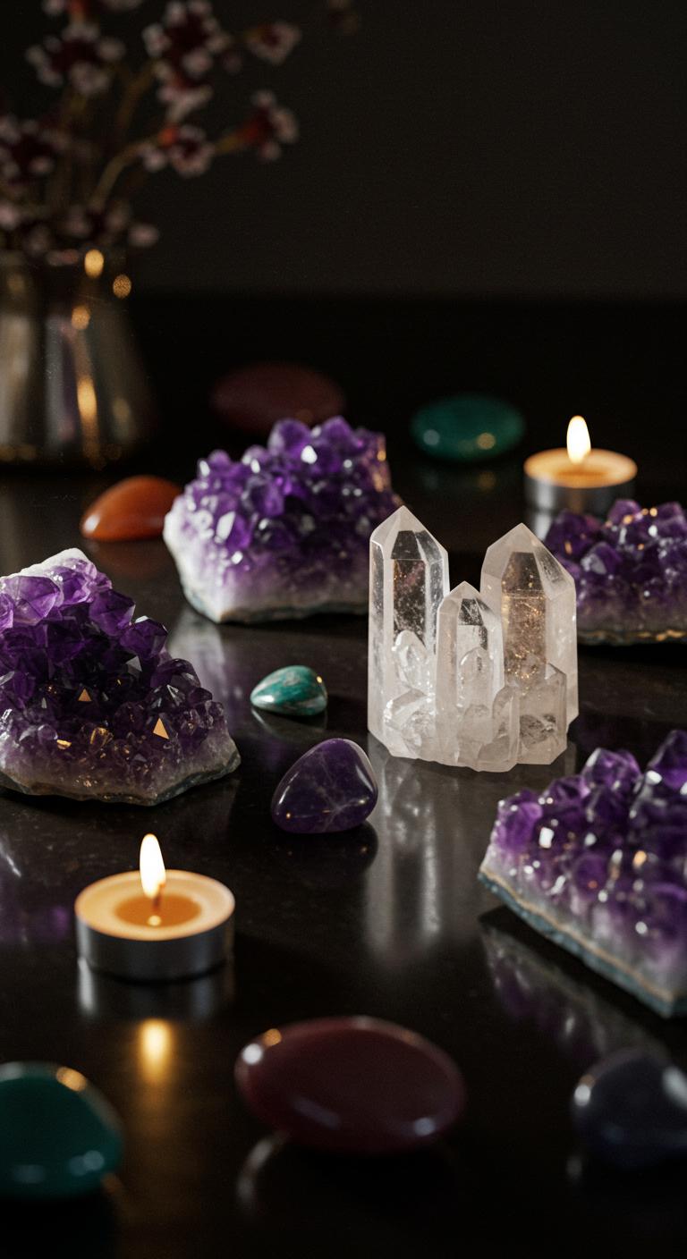 Crystals can enhance the witchy aesthetic with their colors and meanings. Display an assortment of amethyst, quartz, and obsidian on shelves or window sills. Each stone has unique properties—which can add intrigue and even benefits to your space. Buy them in small quantities or go for fake crystals if you’re on a tight budget. Arrange them in clusters or create a separate crystal shelf for an ethereal touch.
