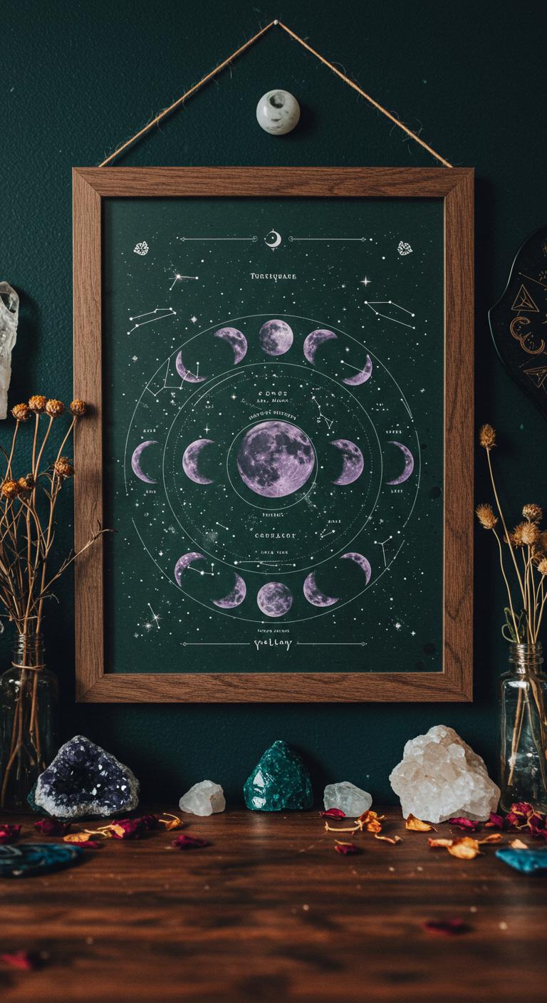 Artwork can set the vibe of any room. Look for prints or paintings that align with mystical themes—think moons, stars, and mystical creatures. If you’re crafty, create your own wall art. Gather canvas, paint, and brushes, and decorate them with your favorite witchy symbols. Don’t forget to add some dried flowers or herbs around the frame for a lovely touch. This kind of decor showcases your personality and makes your space uniquely enchanting.
