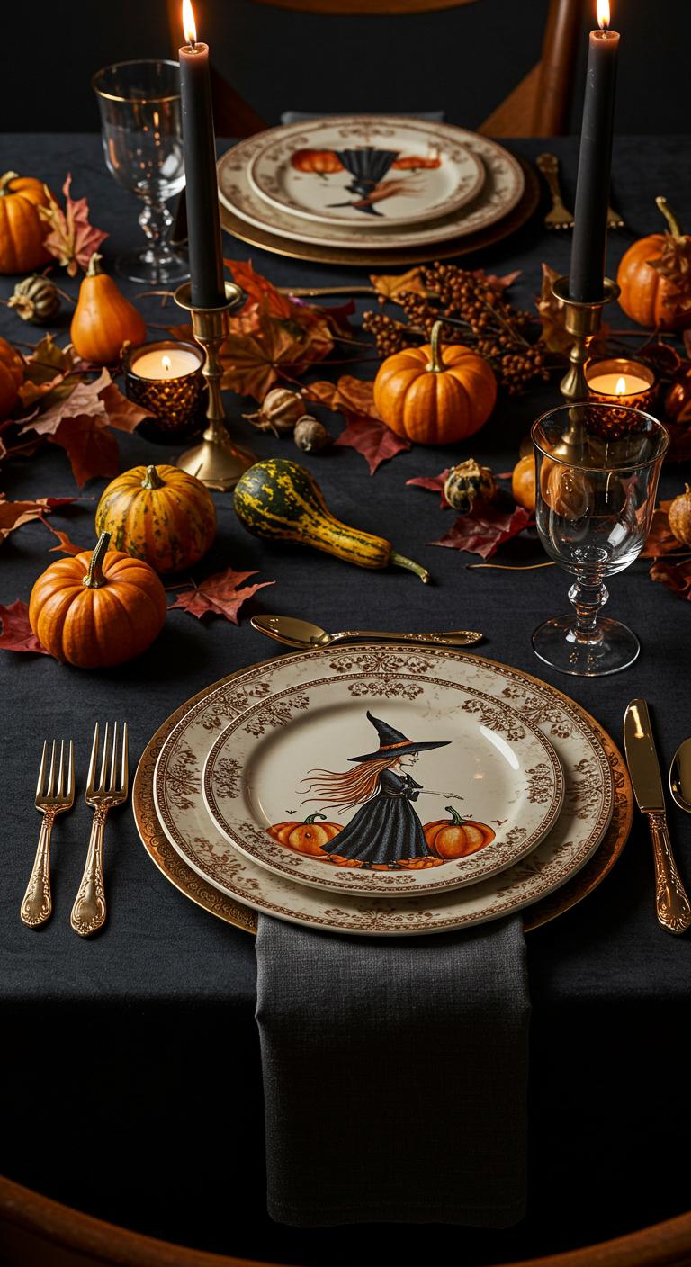 Bring the witchy vibe to your dining table with a themed setting. Use dark tableware and golden or silver cutlery for a touch of elegance. Craft personalized place cards featuring spells or quotations. You can even use small gourds as each guest’s place marker. This adds a delightful personal touch. If you’re feeling crafty, consider DIY table runners from burlap or black fabric. Add seasonal decorations to impress your guests at your next gathering.