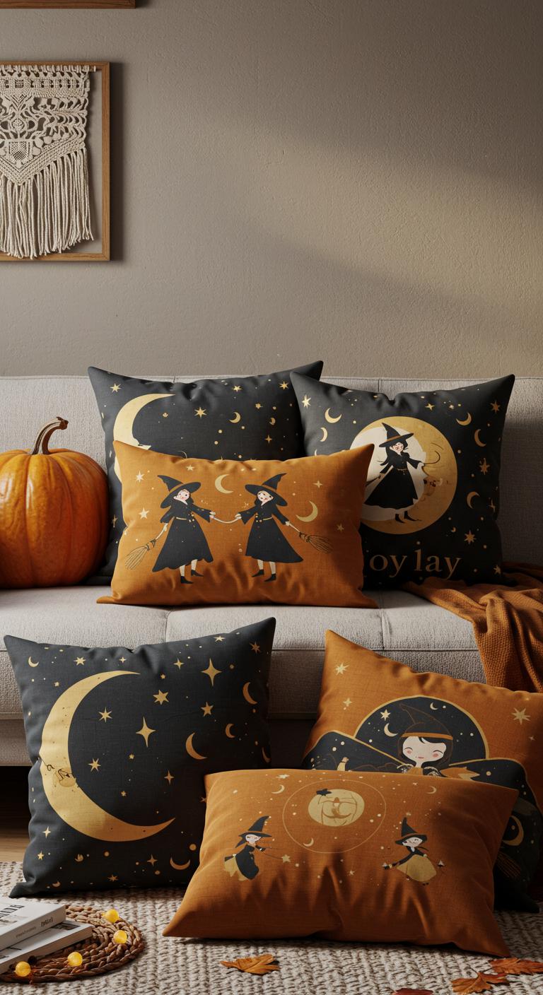 Pillow covers are a simple way to refresh your space. Look for covers with witchy designs like crescent moons or cotton candy-hued bats. You can source them from local stores or online. If you’re crafty, buy some fabric and apply iron-on transfers with witchy images! It’s an easy DIY that doesn’t require sewing. Rotate these covers out each season, and you’ll always have something fresh without spending a lot.