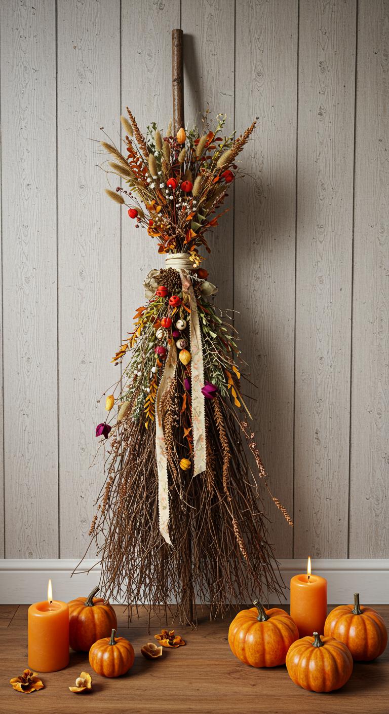 Decorative broomsticks are perfect for instilling that witchy ambiance. Instead of using a traditional broom, create a decorative version using a long stick and dried grass or herbs for the bristles. Decorate it with ribbons and florals for a personalized touch. Hang it near your entrance or in the living room. It’s a fun and budget-friendly project that can easily be customized to suit your taste.