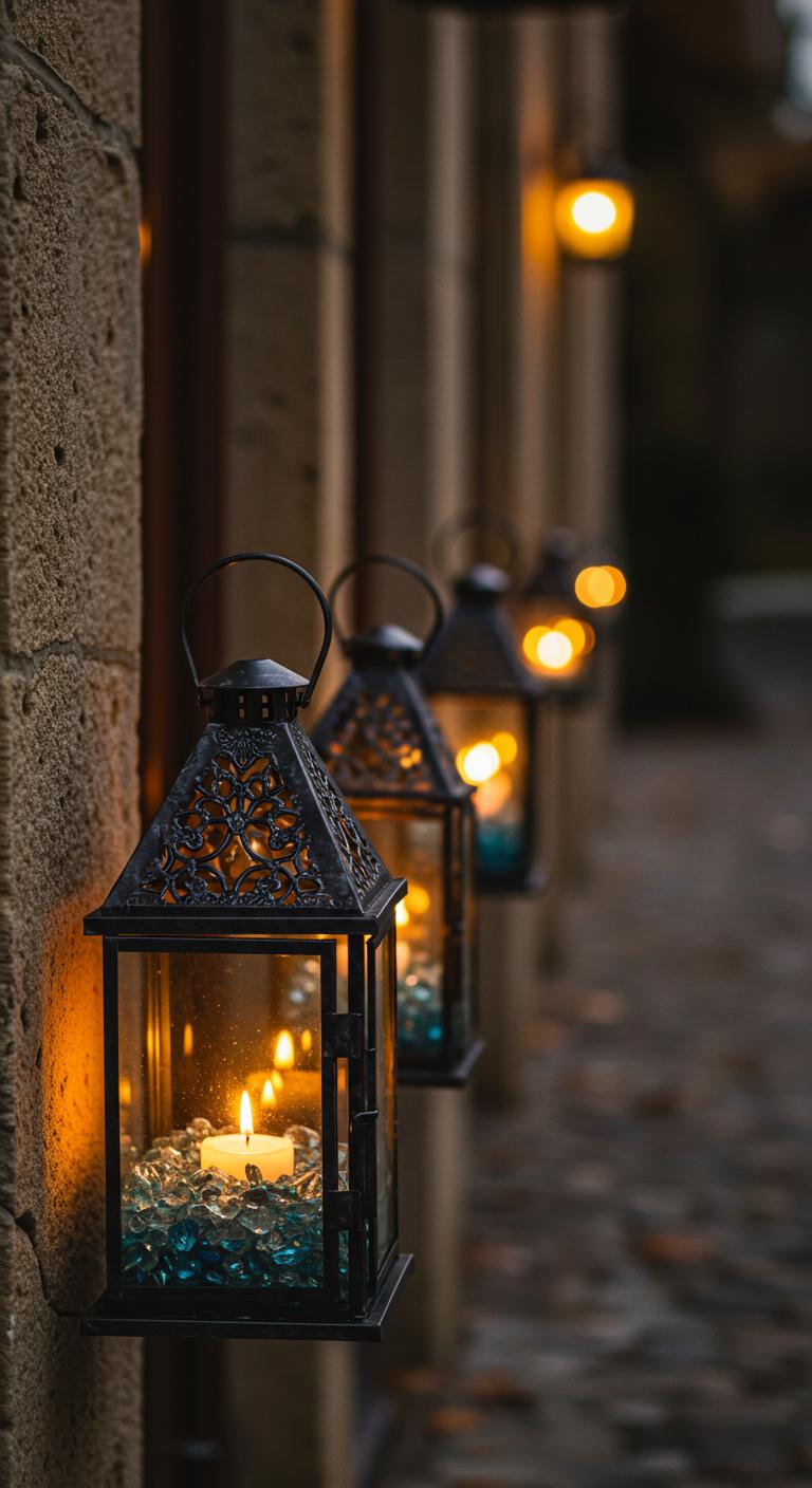 Enchanted lanterns add a warm and inviting glow to your entrance. Opt for lanterns made of wrought iron for a gothic feel. You can place electric tea lights inside for safety and long-lasting light. Use colorful stones or faux gemstones at the base for added charm. If you’re feeling crafty, you can easily upcycle glass jars into stunning lanterns. Just fill them with fairy lights and wrap the lids with lace or twine. They’re budget-friendly and perfect for year-round decor.