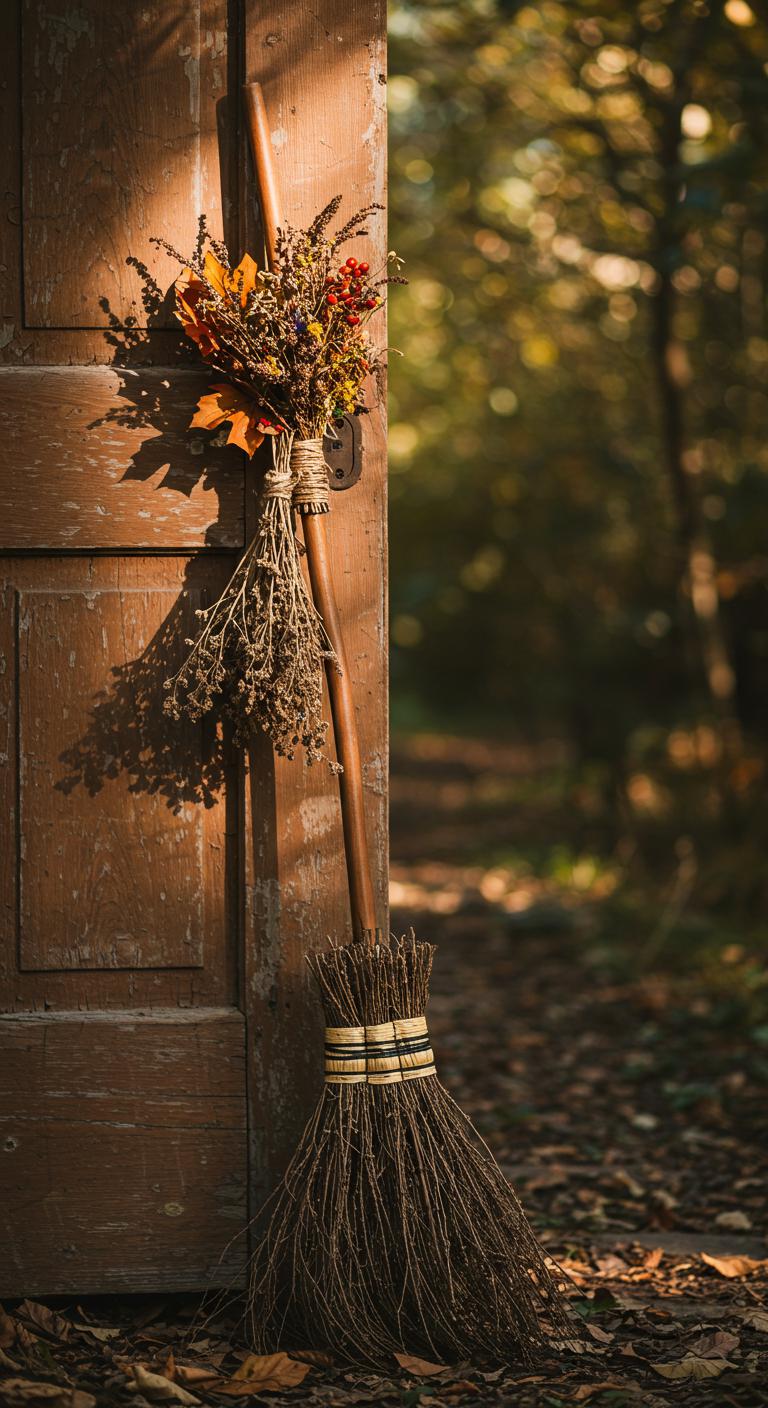 Mystical broomsticks are a classic witchy symbol, perfect for door decor. For a unique touch, hang a broomstick by your door, adorned with twine and dried herbs. You can make a simple broomstick from branches and straw. Decorate it with natural elements, like leaves or dried flowers, to match the season. If you’re short on space, consider leaning a smaller broomstick against the door. It’s an easy way to introduce an element of delight without overtaking your entrance.