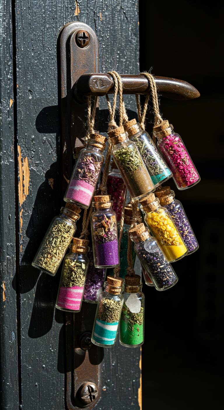 Spell bottles lend an air of mystery and style to your entrance. These little charms can be filled with dried herbs, crystals, and colorful sand. You can easily make them using small glass jars from the craft store. Personalize each bottle with symbols that represent your intentions or favorite scents. Hang them near your door for a delightful display. They’re budget-friendly and allow you to incorporate your personality effortlessly. Add a small label for each bottle to make it interesting!