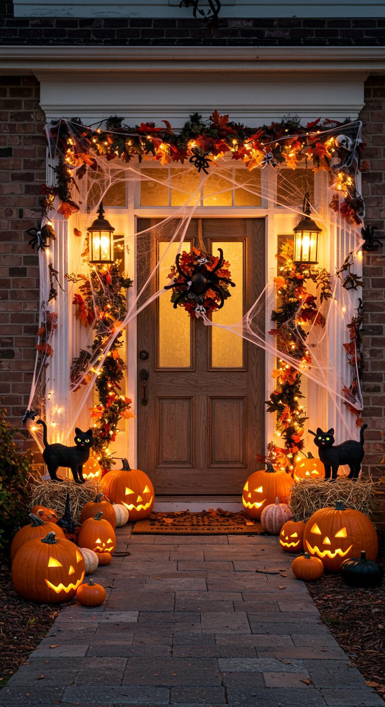 For a playful yet witchy touch, decorate for Halloween cheer. This is a unique way to bring in the seasonal spirit. Use playful accents like cute pumpkins, bats, and string lights. You can create DIY decorations with items from your local craft store. Painting pumpkins in pastel colors or using glitter can add flair. Start by clustering pumpkins of different sizes around your door. Add fake spiders or other fun characters to complete the look. This delightful theme works wonders, regardless of your budget!