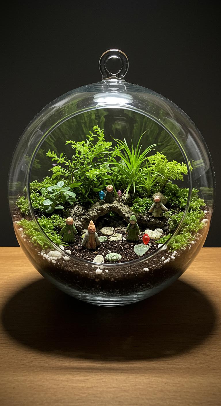 A glass terrarium adds life to your workspace while offering a magical feel. Fill it with a mix of small plants, stones, and tiny figurines that align with your interests.