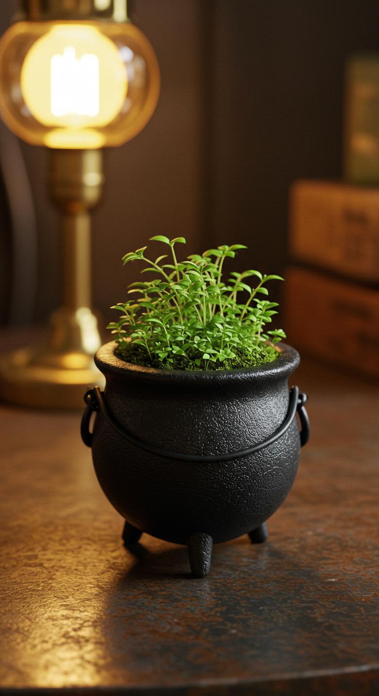 Turn small cauldrons into adorable planters for a magical look. Place them on your desk or shelves for a touch of whimsy. Add a small plant to complete the enchanting effect.
