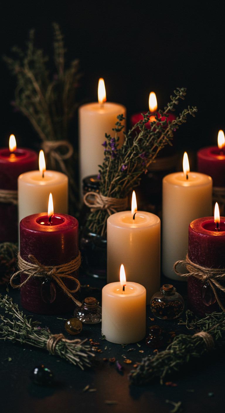 Candles are essential in a witchy decor scheme. They set the mood and add a textural element to your desk. Opt for candles in various heights and shapes for visual interest.