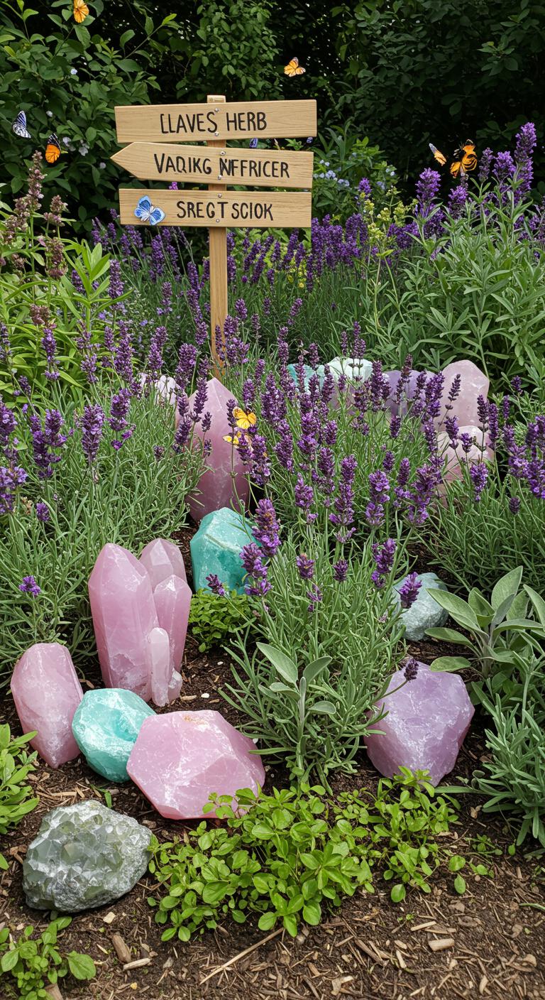 Create a herb and crystal garden for a touch of nature’s charm. Combine aromatic plants like rosemary, thyme, and basil with beautiful crystals like amethyst and quartz. Place the crystals strategically among the herbs, where they catch the sunlight. Use inexpensive terracotta pots for a rustic look. You can even paint them in witchy colors like deep purples or greens. This enchanting mix provides a sensory experience and is ideal for cooking or crafting. Embrace nature’s magic with this captivating setup.