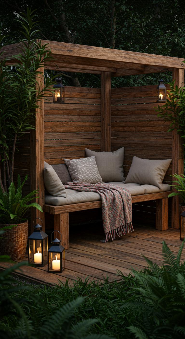Create rustic witchy seating with reclaimed wood. Build a simple bench or use pallets for a unique touch. Add colorful cushions or throws for comfort. You can also paint the wood in dark, moody colors. Surrounding this area, place plants or fairy lights to enhance the vibe. You can make this on a budget using scrap materials. It’s practical and gives a mystical ambiance perfect for gatherings or personal retreats.