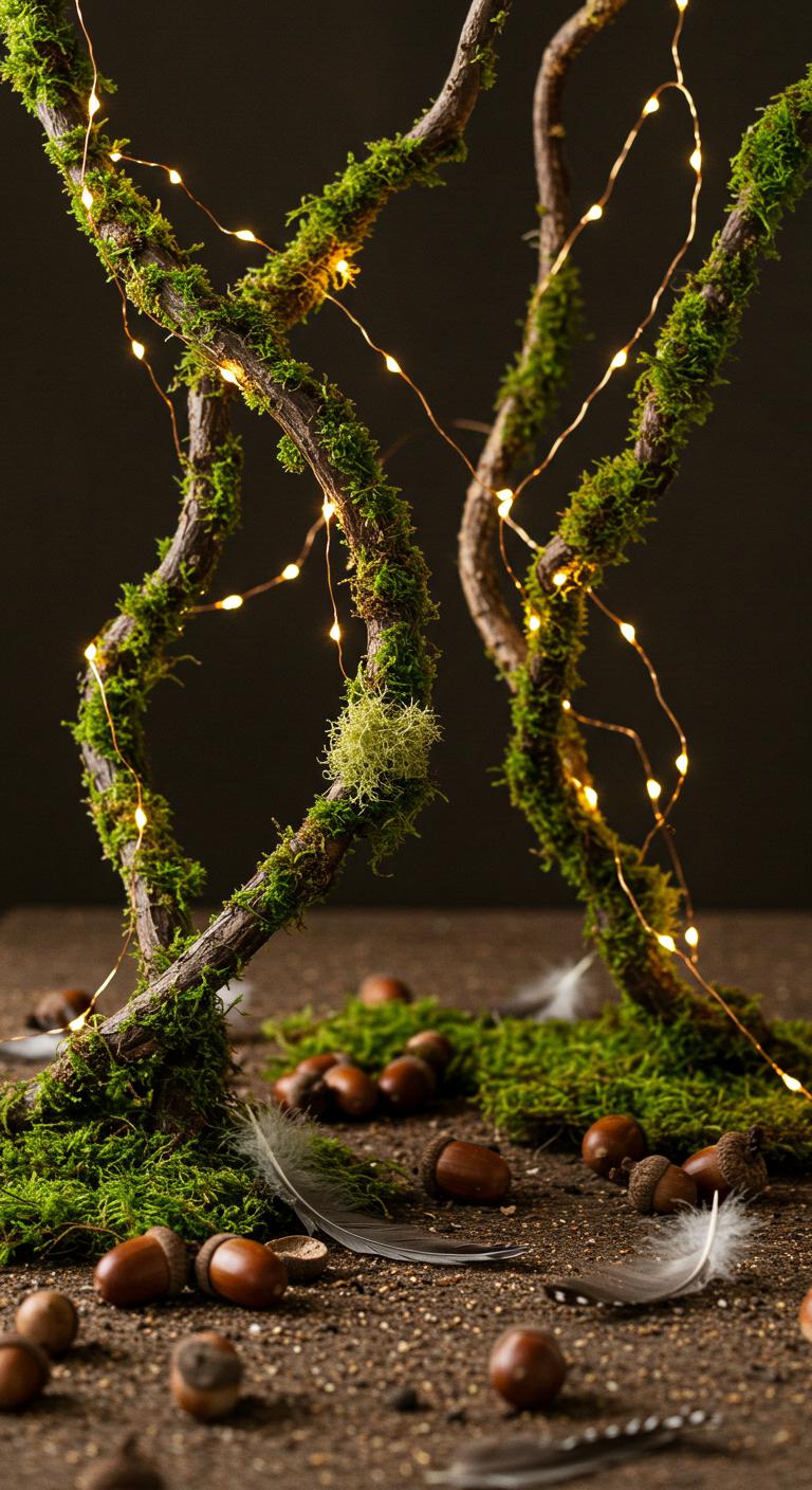 Bring the outdoors in with enchanted forest touches. Use twisted branches as decor by placing them in a heavy vase. Adorn them with moss, fairy lights, or even feathers. Scatter acorns and small pine cones around for a natural feel. For budget-conscious decor, you can collect items from local parks. This setup feels inviting and aligns perfectly with a witchy ambiance, creating a sense of awe and majesty.