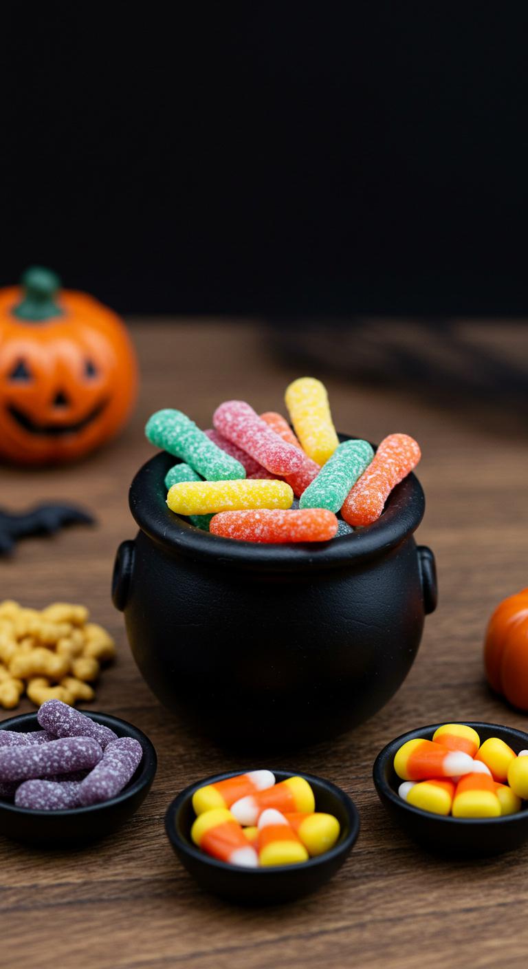 For a fun twist on serving snacks, use small black cauldrons as serving bowls. Fill them with treats like gummy worms, popcorn, or even little candies for a whimsical touch. You can often find plastic cauldrons at party supply stores. If you’re crafty, paint small bowls matte black for a personal touch. This quirky idea sparks joy and adds thematic entertainment for both kids and adults alike.