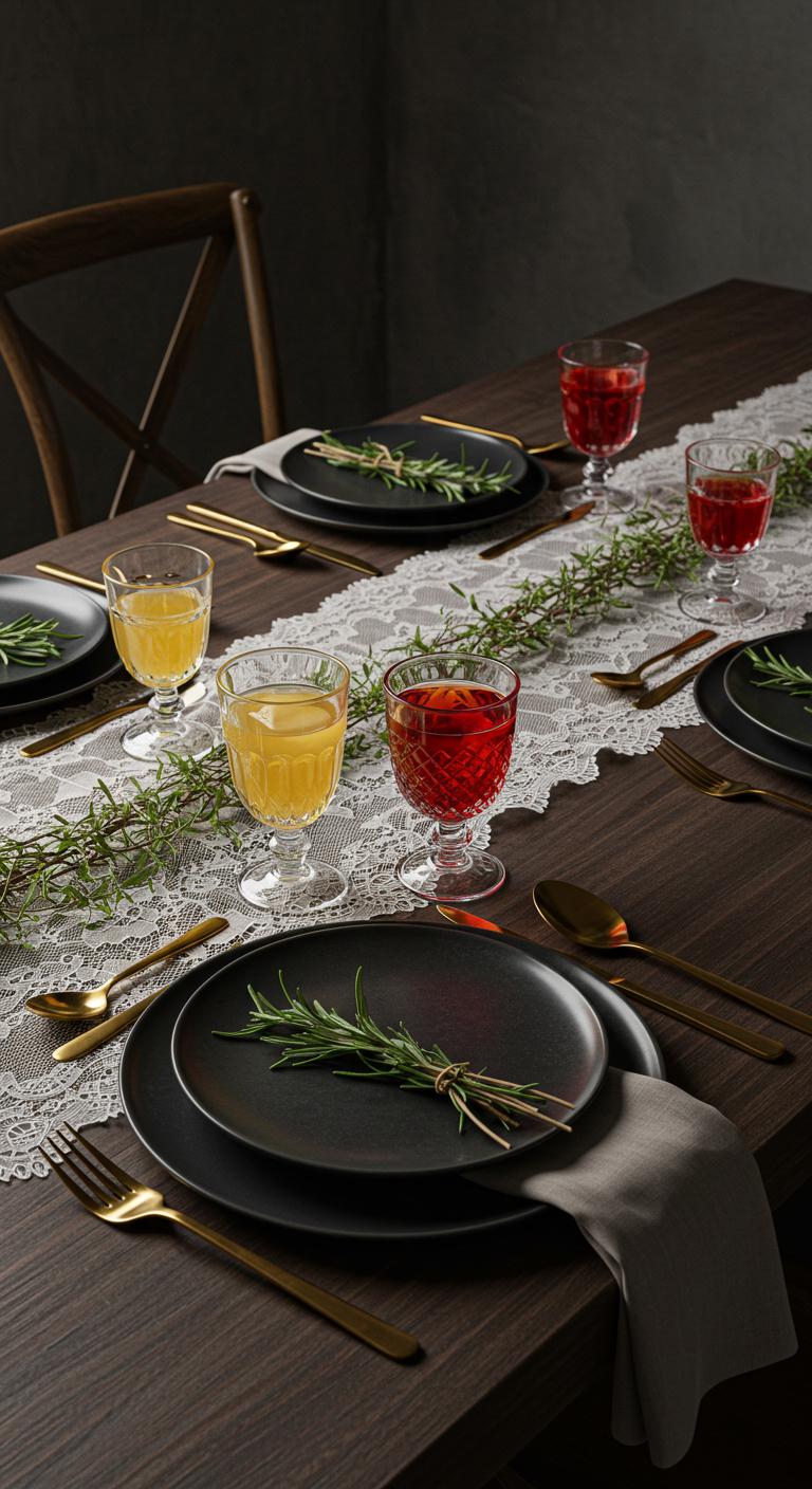 Craft themed table settings with dark plates and metallic accents. Use lace runners or dark fabrics as tablecloths. Incorporate goblets filled with colored drinks for a dramatic effect. Tiny fresh herbs as place settings can summarize your theme while being eco-friendly. You can often score these items at dollar stores, making the setup not only elegant but also economical. This thoughtful setup sets the scene for an inviting and visually stunning feast.