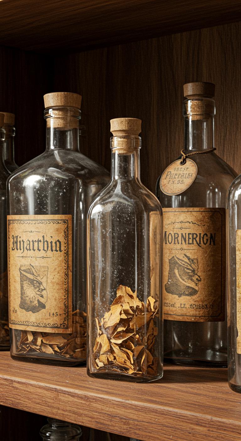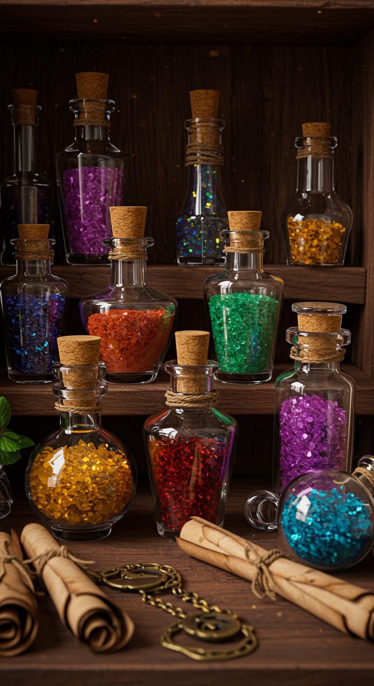Creating your own potion bottles can easily transform your shelf into an enchanting display. Use glass bottles or jars that you find online or at craft stores. Fill them with water, food coloring, or glitter to create eye-catching elements. Label them with fun potion names. This can be a great weekend DIY project, and you can even involve friends for some collective crafting fun.