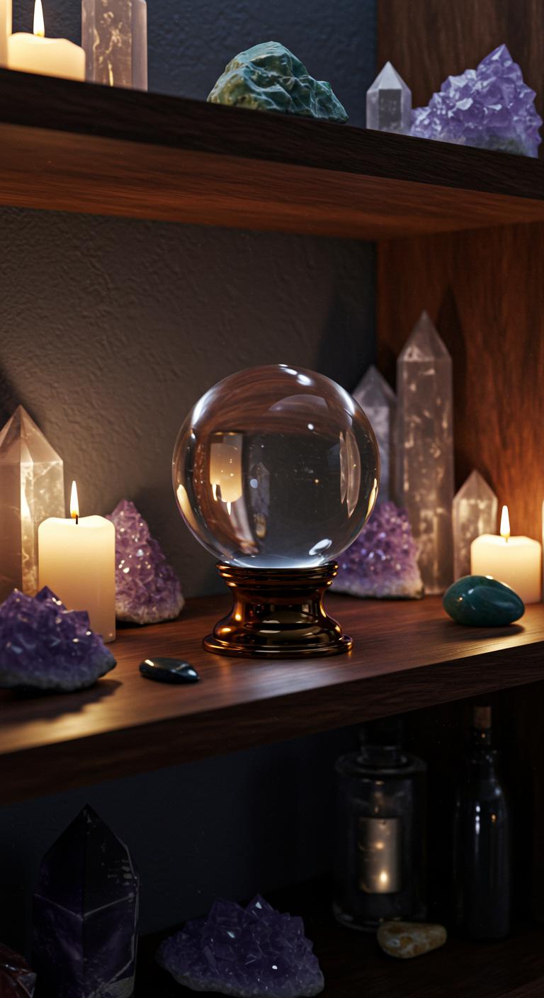 A crystal ball can become a focal point of your shelf. Find one that speaks to you, possibly a clear glass or a colorful quartz. Use it as a centerpiece among other decor elements. Include candles or small plants around it. Look for second-hand options; often, you can find them at flea markets for less.