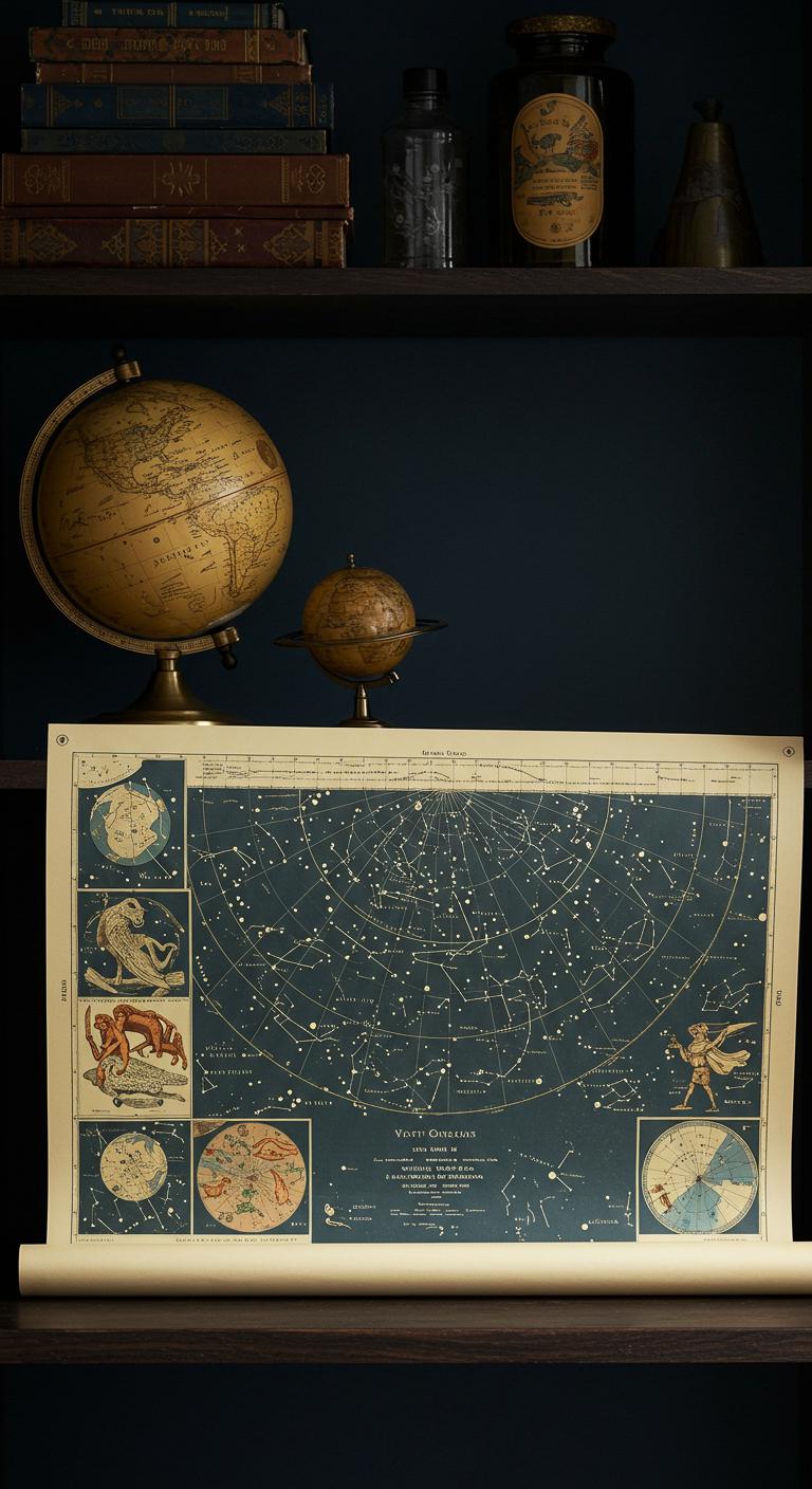 A star map invites mystery and magic into your decor. Framing a beautiful star map adds a statement piece to your shelf. You can find affordable versions online or even print one yourself. Display it with a few related decor pieces, like a small globe or celestial-themed items. This can inspire celestial wonder every time you walk by.