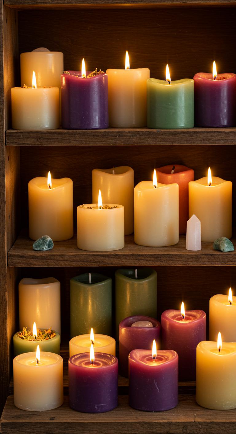 Candles are essential for setting a witchy mood. Opt for different shapes and sizes to add variety. Choose colors that resonate with your intentions, like deep purple for spirituality. Decorate plain candles with herbs or gemstones for a personalized touch. Candle holders can be made from recycled materials or bought affordably at thrift stores. Keep them in a safe space to enjoy their soft glow at any time.