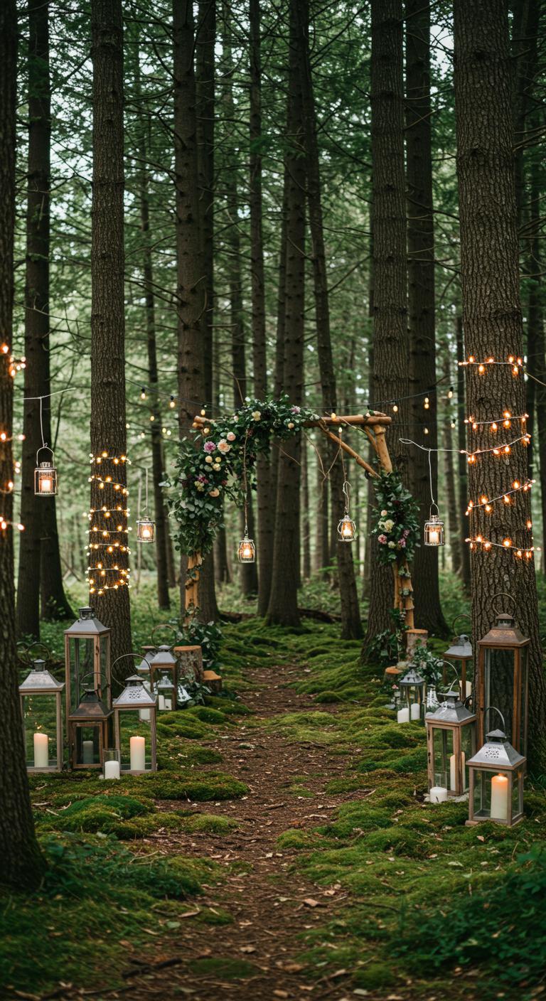 Creating a dark forest theme can transport guests into a mystical woodland. Start by incorporating lots of greenery, like ferns and ivy. You can source affordable plants at local nurseries. To add a magical touch, consider using twinkling fairy lights wrapped around tree trunks or hung from branches. A rustic wooden arch adorned with vines and flowers makes a perfect ceremony backdrop. Use candles in various heights for an intimate feel. DIY candle holders can be made from wood slices. Crafting your centerpieces with branches and moss ensures a cohesive look.
