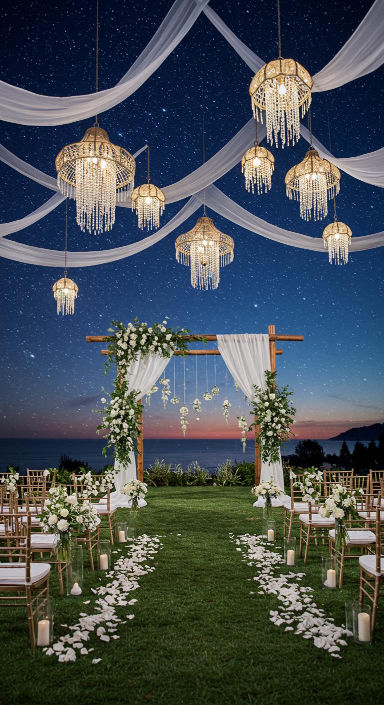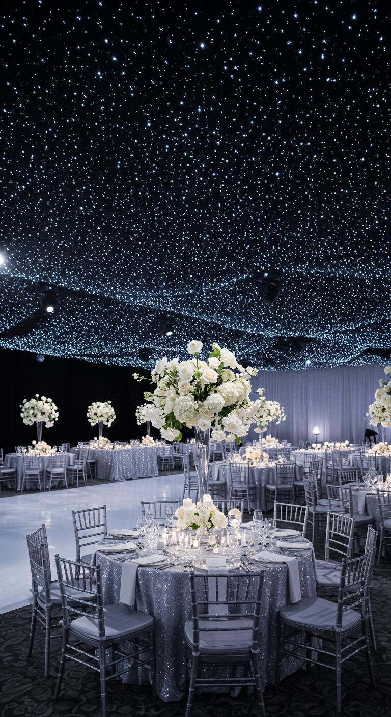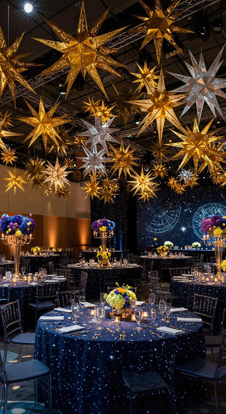 For a wedding that reflects the beauty of the cosmos, a celestial theme works wonders. Think deep blues, golds, and silvers. Use starry table runners; they can easily be created with navy fabric and gold spray paint. Consider a star map as your guest book! Attaching gold star stickers where guests can sign creates a stunning keepsake. Incorporating moon phases into invitations and signage will add a personalized touch. For a budget-friendly centerpiece, use glass jars filled with glitter and battery-operated lights to mimic twinkling stars.