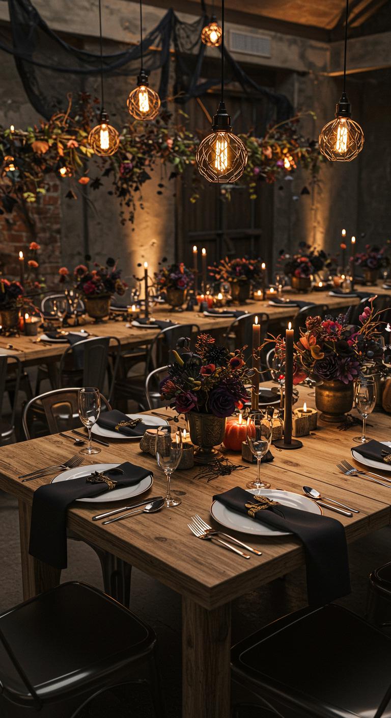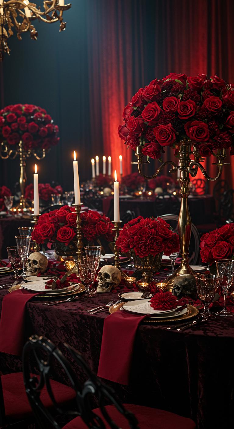 If you’re drawn to a gothic romance aesthetic, focus on bold colors like deep reds, blacks, and purples. Utilize luxurious fabrics like velvet for table coverings. A simple yet impactful centerpiece can be designed using candelabras. You can find them at thrift stores and paint them in black or gold for a dramatic effect. Incorporate dark, moody florals such as black calla lilies. Add elements like vintage mirrors or skulls to subtly enhance your theme without going overboard. Handwritten place cards in dark hues will add sophistication.